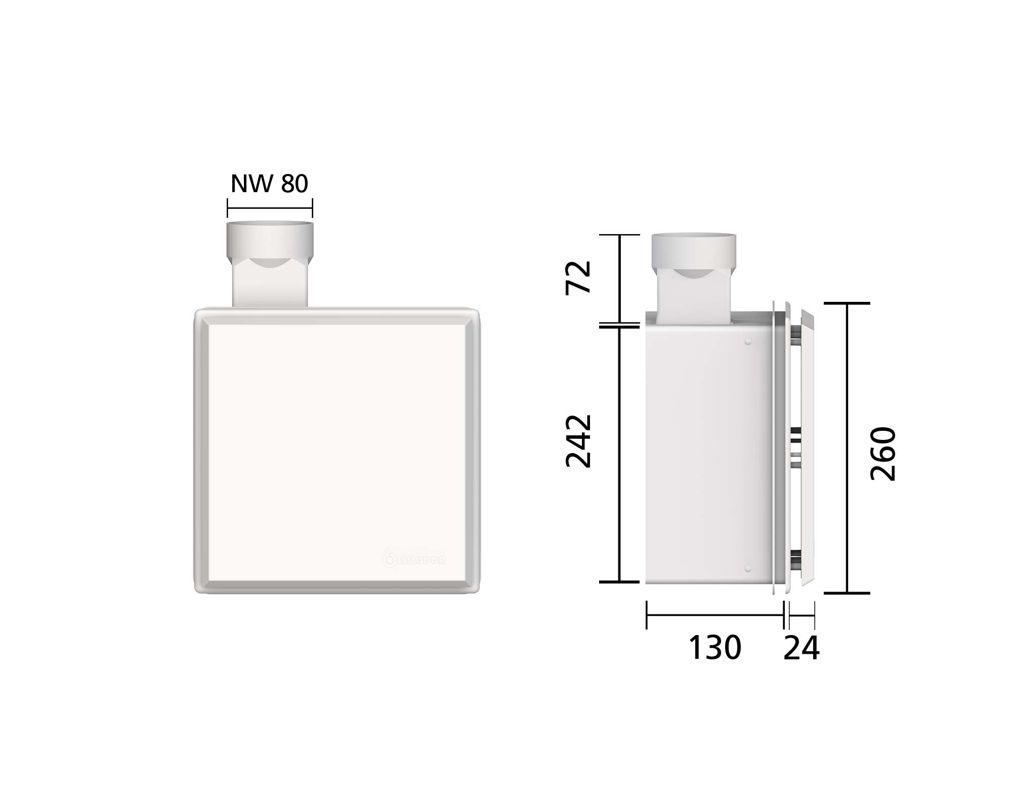 Der LIMODOR-Ventilator F ist mit steckbarem Elektroanschluss ausgestattet. Zur elektronischen Steuerung des Ventilators mit steckbarem Anschluss können die Zeitschalter LT1 oder LTU2 aufgesteckt werden. Der Netzanschluss erfolgt durch ein­faches Aufstecken der Steckkupplung. Aus Platzgründen kann beim Aufputzmodell A nur der Zeitschalter LNR-E zusammen mit Gebläse F, alte Version verwendet werden.