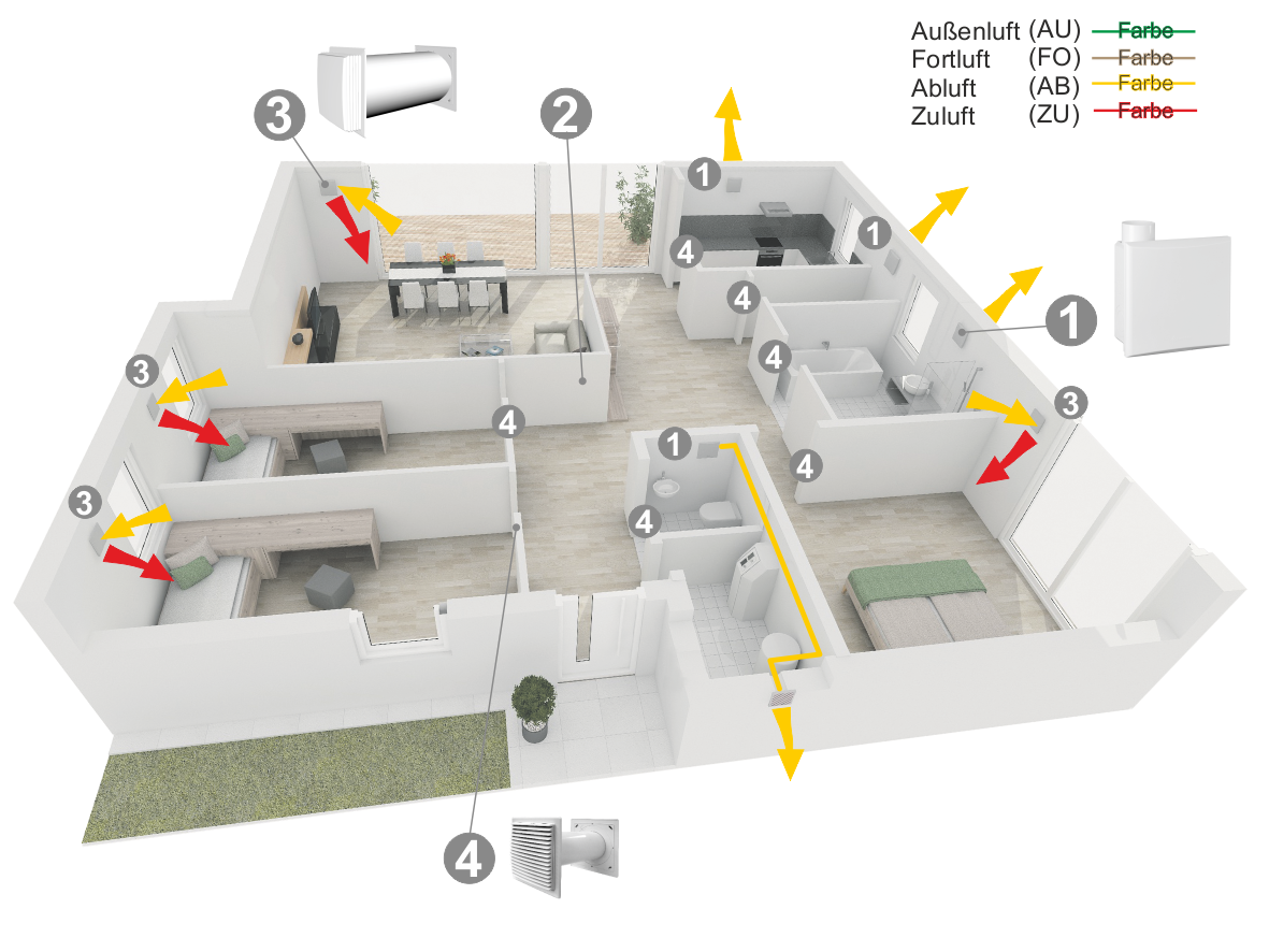 Die Wandlüfter werden in der Außenwand eingesetzt und können durch eine intelligente Steuerung einen Luftaustausch inkl. einer Wärmerückführung in der Wohnung gewährleisten. Rohrleitungen zur Luftführung z.B. in der Decke oder im Fußboden, oder auch Reinigungsintervalle für diese Rohre, entfallen