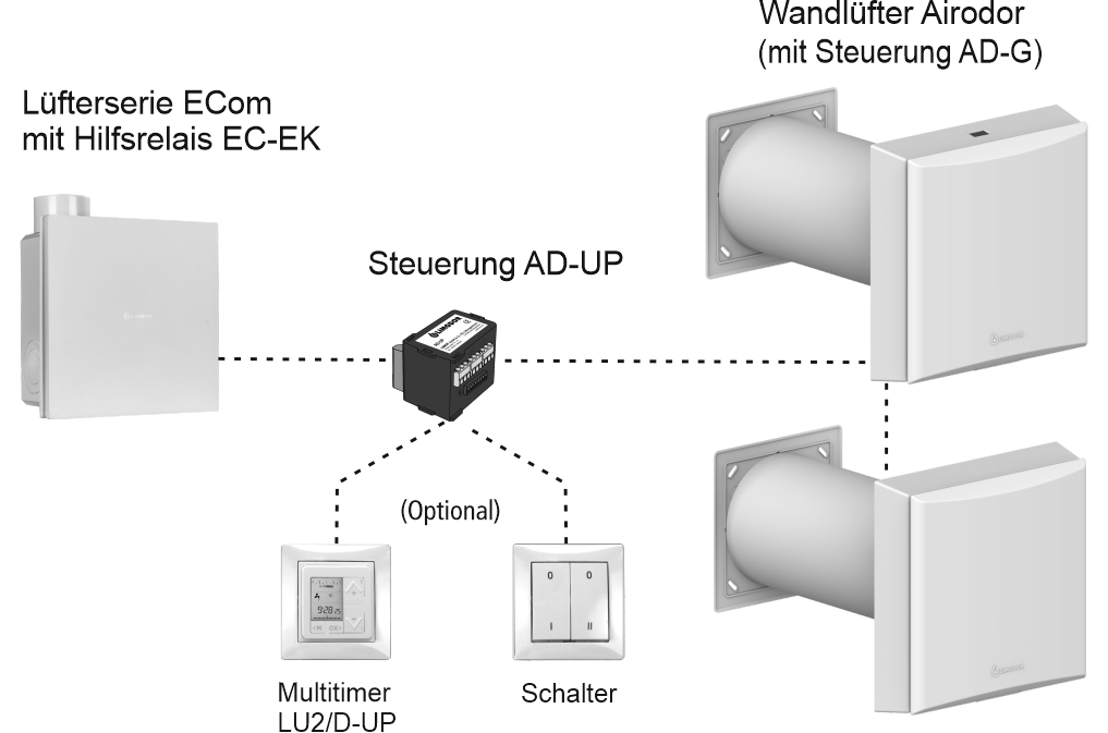 Programm-/Bedienfunktionen über Steuerung AD-UP oder AD-UV