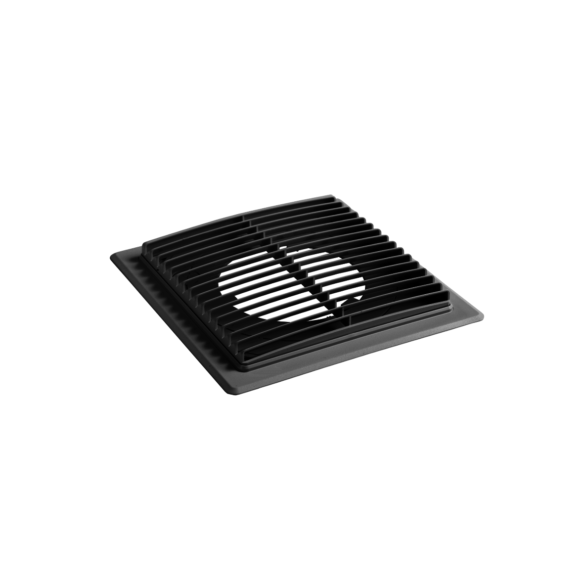 Abdeckgitter aus Kunststoff (Farbe: Anthrazitgrau ähnlich RAL7016) als Außenabdeckung für Wandlüfter AIRODOR mit Durchschiebesicherung und Montageset. Als Wetterschutzgitter für Rohrnennweiten bis NW 160 mm einsetzbar.